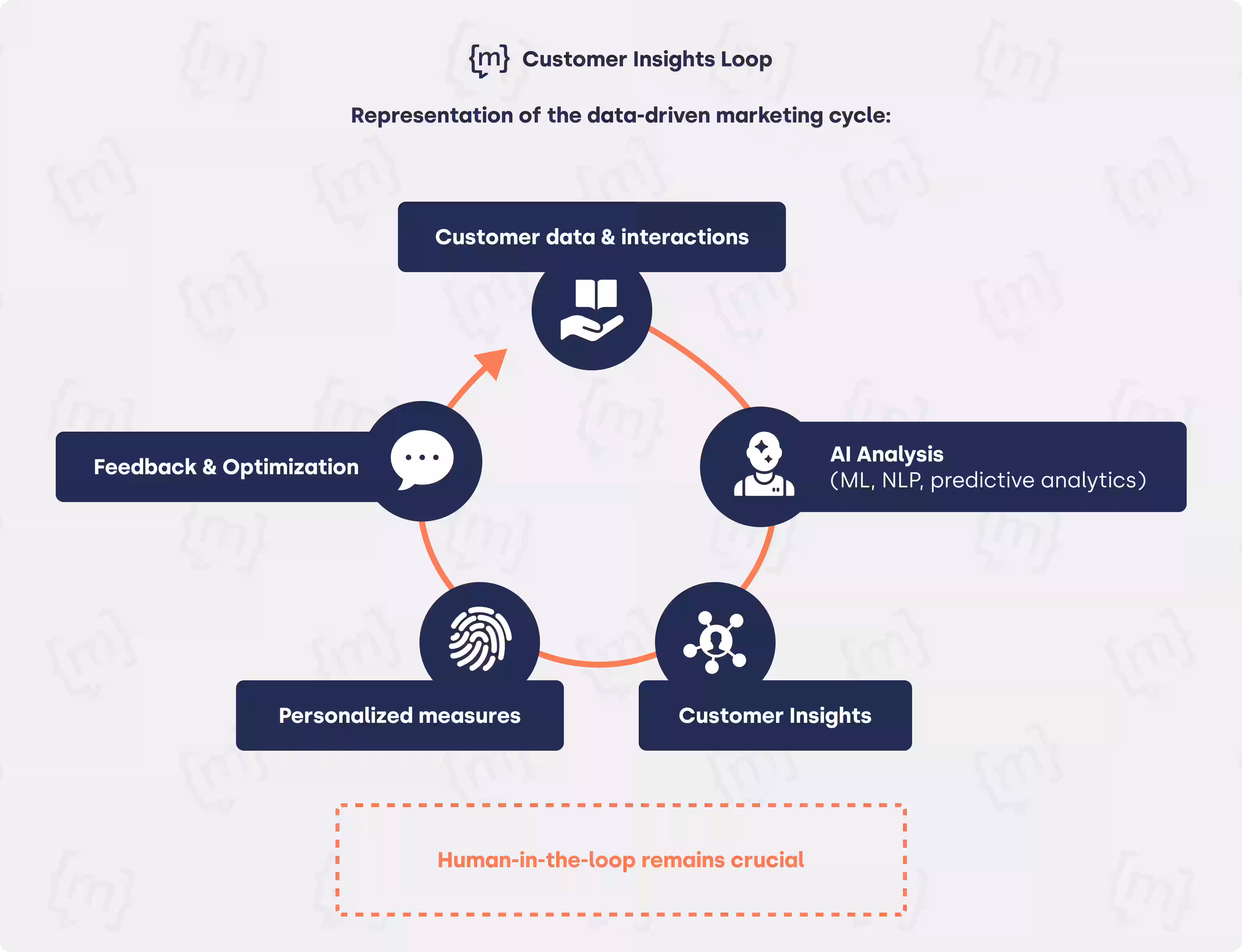 among other things, and then translated into consumer-oriented decisions. The use of machine learning, natural language processing, and predictive analytics enables the processing and evaluation of large amounts of structured and unstructured data, from which conclusions about customer needs and marketing strategy can then be drawn. Brands can use these insights to make consumer-oriented decisions. It is crucial to use AI on a strong data foundation, because the insights are only as good as the data on which they are based. Despite the advantages of AI in speed and pattern recognition, it cannot completely replace the context and critical interpretation of human actors. In addition, biases in training data continue to pose a challenge.