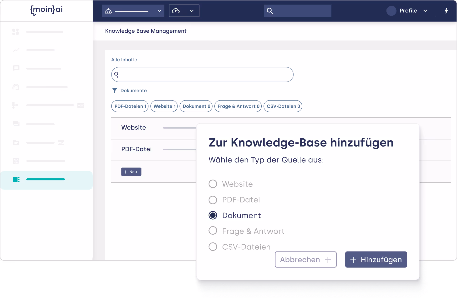 Experience the future of customer interaction with moinAI – for automated inquiry processing, personalized product recommendations and effective lead generation.