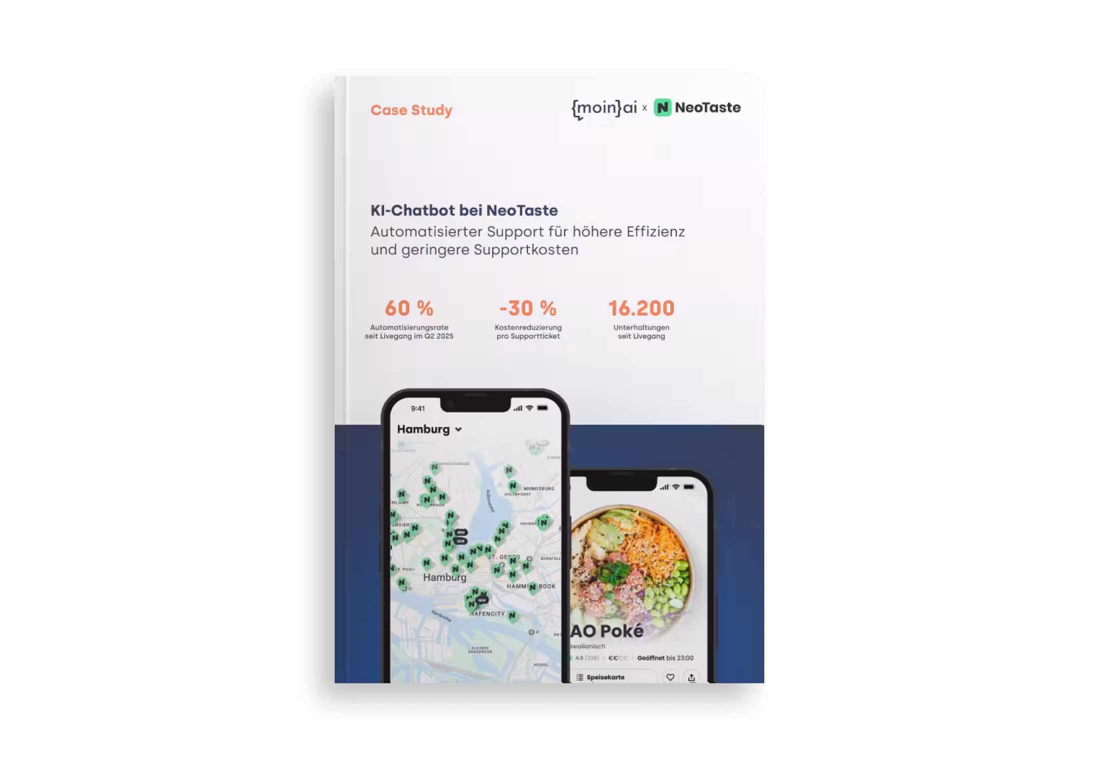 Was passiert, wenn ein Chatbot wiederkehrende Supportanliegen nicht nur beantwortet, sondern Nutzer:innen Schritt für Schritt zur Lösung führt? NeoTaste zeigt in dieser Case Study, wie geführter Self-Service im Alltag funktioniert und wie Supportteams dadurch entlastet werden. Bei NeoTaste entfallen rund 45 % der Tickets auf wiederkehrende Anliegen.