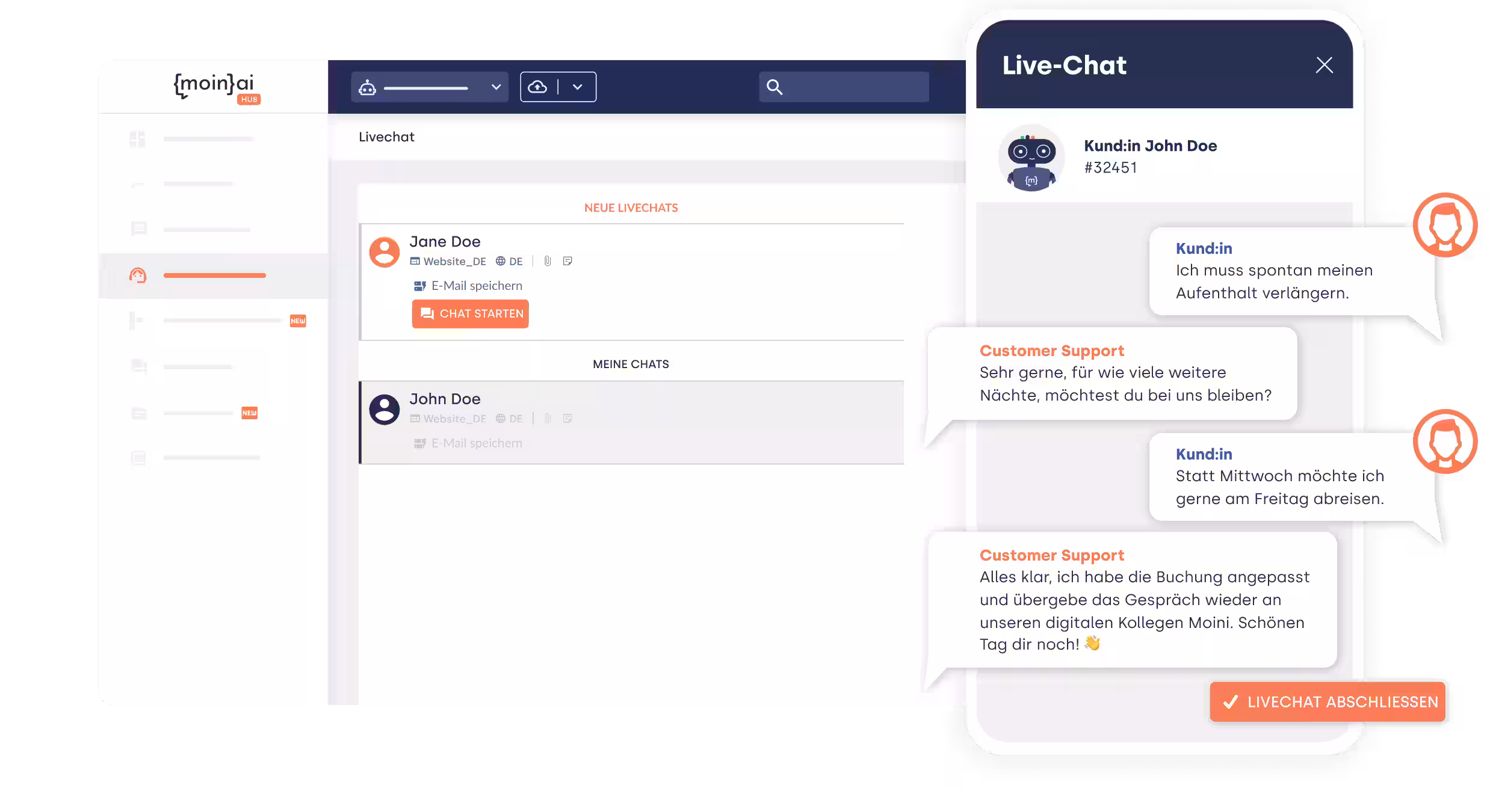 With the moinAI chatbot, we can automate part of our inquiries and provide our customers with a 24/7 solution. This relieves our customer service team and increases customer satisfaction. In addition to the chatbot, seamless handover to our customer service is important to us.